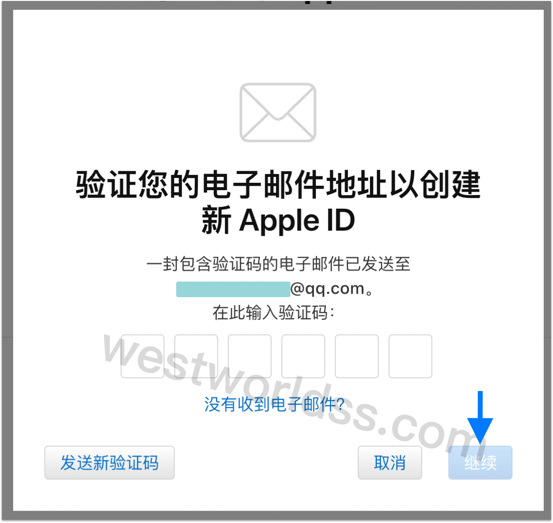 - 输入注册邮箱中收到的验证码